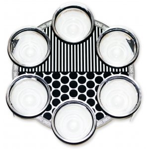 Honey on Rosh Hashanah symboizes our wish for a sweet new year. Enhance the prayer with this lovely honey dish from Dorit Judaica. The base is a laser-cut flower shape in eye-catching red and gray colors. In the center is a glass bowl with a lucite decorative spoon. Dainty pomegranate shaped feet make this a work of art.