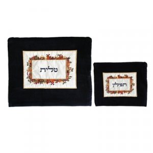 An impressive faux leather Tallit and Tefillin bag, in a gentle marbled brown color, to protect your holy prayer items. The larger Tallit bag displays a royal crown and beneath it, embossed in gold, are the sacred words of the aristocratic Priestly Blessing recited in prayers and aloud in front of the congregation in the Synagogue.