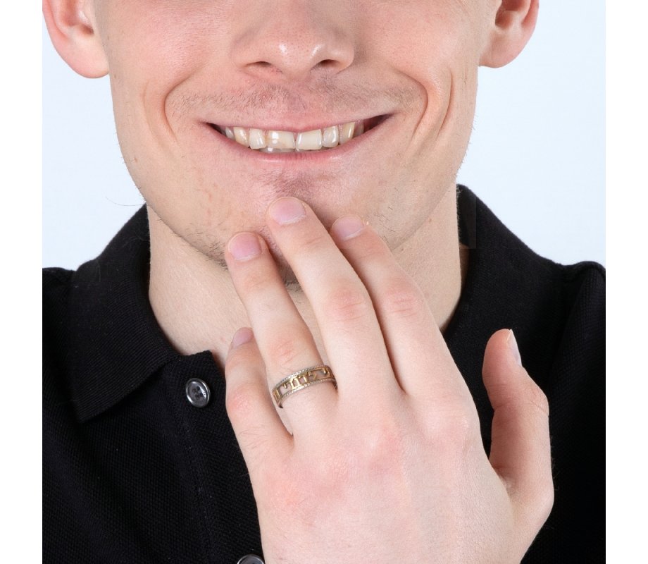 Express your love and devotion with this magnificent 925 sterling silver ring of faith. Around the ring, in a beaded frame, are elegant gold plate Hebrew letters spelling out the words "Ani LeDodi veDodi Li" in a cutout design. On the ring's interior is the English translation: I am my beloveds and my beloved is mine. For men or women.