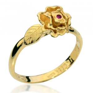 Enrich the life of your loved one with this splendid piece of Kabbalah jewelry – a luxurious ring crafted by hand in Israel by HaAri. The sterling silver band is engraved with powerful words of love from King Solomon's Song of Songs. A pleasing diagonal design holds five gleaming red rubies – known as a symbol of love and fertility making this an eloquent gift for a bride.
