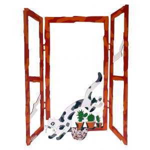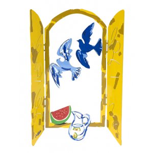 This colorful standing Hamsa, the amulet known to bring good luck and drive away negative spirits, will make a lovely home decoration. Under the sun's rays, it depicts a colorful hand-painted view of ancient Jerusalem. In the center is a bold "Shalom" in Hebrew and English, the word of all languages for greeting, farewell and peace.