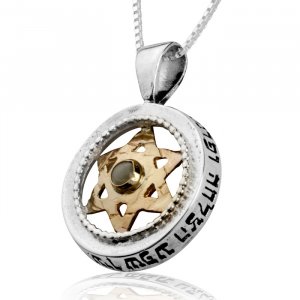 Sterling Silver Necklace Pendant with 72 Heavenly Names and Blue Opal Stone