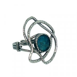 This wonderful ring expresses your deep connection to the Land of Israel. Crafted from sterling silver, it displays a piece of authentic Roman glass that was excavated in Israel. Cut in an elegant marquise shape it glows with green-blue hues. For your comfort, the band is gently adjustable.