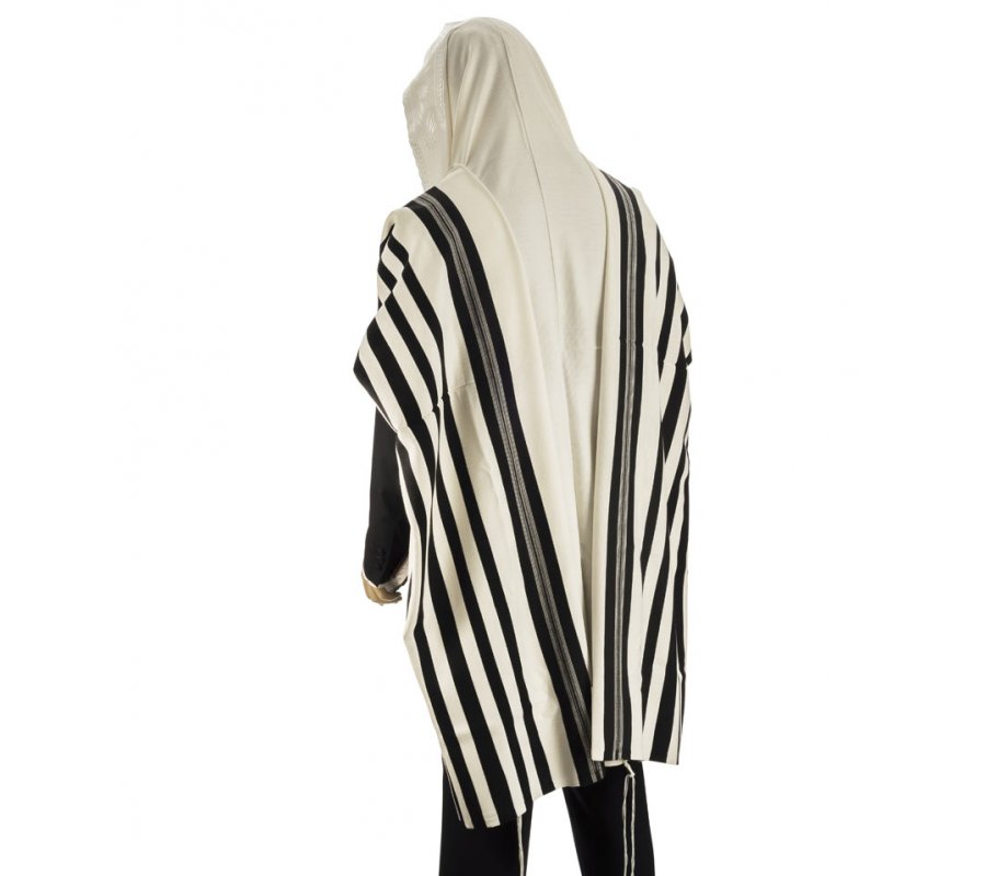 Product Description This is traditional 100% wool tallit which has been made using modern techniques to produce a fabric that is comfortable and elegant. It has a non-slip texture which will ensure that it sits comfortably on your shoulders leaving you free to focus on your prayers. Choose black-white or white-white stripes.