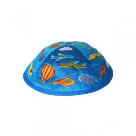 Embroidered Kippah for Children, Airplane Design on Blue - Yair Emanuel$10.95
