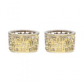 Hand-Painted Wood Fitted Candlesticks - Golden Jerusalem by Yair Emanuel$37.31 -