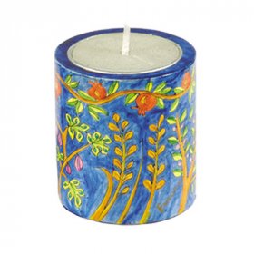 Yahrzeit Memorial Hand Painted Wood Candle Holder, Seven Species - Yair Emanuel$22.88 -