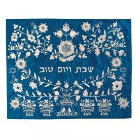 Fully Embroidered Challah Cover with Floral Design, Silver and Blue - Yair Emanuel$59.44 -