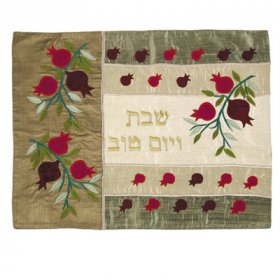 Embroidered Challah Cover with Circular Pomegranates and Hebrew Words - Yair Emanuel$19.69 -