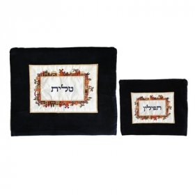 Dark Velvet Tallit & Tefillin Bag Silk Applique, Colored Jerusalem - Yair EmanuelSize: Tallit bag - 14” X 11.5”, Tefillin bag - 10” X 8.5”$29.92 -