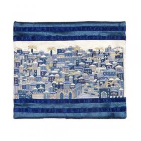 Tallit Bag Embroidered with Panoramic Jerusalem, Blue - Yair Emanuel$34.34 - $44.30 -