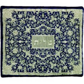 Tallit and Tefillin Bag with Full Embroidery, Silver and Blue Flowers - Yair EmanuelSize: Tallit bag - 14" x 11", Tefillin bag - 8.3" 6.7"$28.16 - $44.00 -