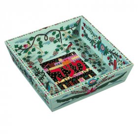 Hand Painted Wood Blue Matzah Tray, Flowers & Birds - Yair Emanuel$92.56 -