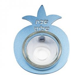 Pomegranate Salt Holder with Glass Dish and Shabbat Shalom, Blue - Yair Emanuel$19.69 -