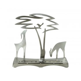 Judaica artist, Shraga Landesman, lives and works in Haifa. An artist of renown, his Judaica, displayed in museums and galleries throughout the world, express his deep attachment to the People and Land of Israel. He is particularly fascinated by Biblical sources and the ancient cultures that once lived in Israel. Using modern technology, he processes anodized aluminum, cast brass, wood, and glass, and reproduces the symbols, images, motifs and fonts of the ancient world. Many of his Judaica items carry Hebrew text in the old-style script. He is passionate about nature, its trees, animals and birds and this is reflected in many of his products.