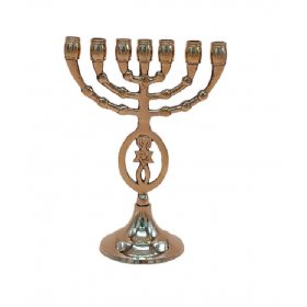 Brass Gold Seven Branch Menorah with Star of David and Fish 8 Inches HeightHeight: 8"$30.31 -