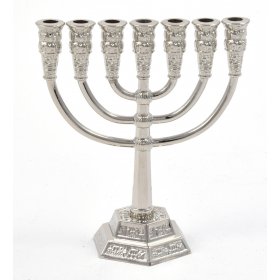 Silver Seven Branch Menorah, Jerusalem Images - Choice: 5.3" or 8.6" HeightComes in 2 sizes$15.95 - $60.42 -