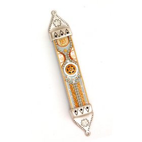 Center Crystal Flower Mezuzah Case - Shahaf$120.03 -