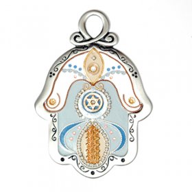 Wall Hamsa by Ester Shahaf in Blue Flower DesignSize: 4.9" x 3.1"$110.88 -