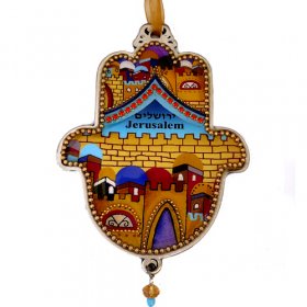 Hand Painted Hamsa Wall Plaque, Colorful Jerusalem Images - Iris Design$61.72 -