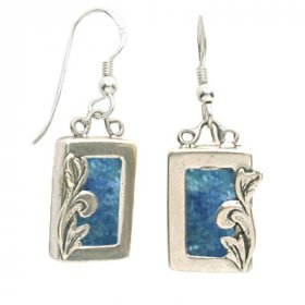Small Sterling Silver Drop Earrings with Roman Glass in a Rectangle - Michal Kirat$40.80 -