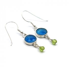 Sterling Silver Dangle Earrings with Roman Glass and Peridot Beads - Michal Kirat$48.95 -