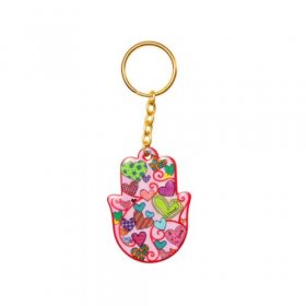 Yair Emanuel Gold Key Chain with Enamel Finish - Hamsa Hand with Colorful Hearts$12.71 -