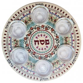 Circular Seder Plate with Six Dishes, Delicate Pomegranate Design - Dorit Judaica$101.54New arrival! -